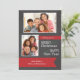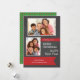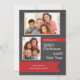 Diese kundengerechte zwei Fotorahmen Weihnachtskarte kennzeichnet einen grauen Tafelhintergrund mit der Benennung: Frohe Weihnachten und guten Rutsch ins Neue Jahr geschrieben in weiße Kreide. Eine rote Fahne an der Unterseite der Karte kennzeichnet kundengerechte Art, damit Sie Ihre Familiennamen addieren. Die Rückseite dieser Karte hat ein rotes, graues und grünes Tupfenmuster.