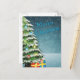 Weihnachtsgrüße mit Bäumen, Schnee und Geschenkpackung