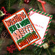 Dies ist eine festliche Urlaubskarte in grün und Bonbons roten Streifen Sprichwort wünschen Ihnen ein sehr frohes Weihnachtsfest. Es ist sehr kühn und fröhlich. Die Rückseite ist bearbeitbar. Diese Beispielkarte lautet: Von unserer Zuhause zu Ihrer, The Henderson Family 2024