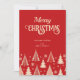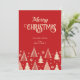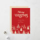 Frohe Weihnachtsgrüße roter Hintergrund mit beige stilisierten Weihnachtsbäumen und Schneeflocken Retro-Stil des 20. Jahrhunderts Vorlage Einladung Sofortdownload