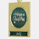 Frohe Weihnachten 2023 Grün Kariert Banner-Ornament Gold