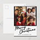 Frohe Weihnachtstypografie personalisierte Foto Urlaub Postkarte mit Bereich für 3 Ihrer Lieblings-Fotos. Fügen Sie Ihre Nachricht auf der Rückseite dieser süßen Postkarte hinzu. Die perfekte Grußkarte für alle Ihre Familie und Freunde. 100% Kundenzufriedenheit jeden Tag bei Zazzle.