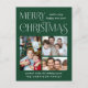 Elegante grüne Urlaubspostkarte mit "Frohe Weihnachten" in Vintager, stylischer Typografie, "Happy New Year" und einem Gruß in weißer, moderner Typografie, 3 Ihrer Lieblings-Fotos und Ihrem Namen. Auf der Rückseite, fügen Sie ein 4. Foto und personalisieren Sie Ihre saisonale Botschaft an Freunde und Familie.