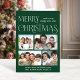 Elegante, grüne Faltenkarte mit "Frohe Weihnachten" in Vintager, stylischer Typografie, "Happy New Year" und einem Gruß in weißer, moderner Typografie, 4 Ihrer Fotos und Ihren Namen. Personalisieren Sie Ihre saisonale Botschaft an Familie und Freunde im Inneren.