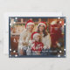 Einfache, minimale, stylische fünf individuelle Fotos "Frohe Weihnachten und ein glückliches neues Jahr" (veränderbar) Typografie-Skript überlagert horizontale Weihnachtskartenvorlage mit dunkelmarineblau Rahmen und weißen Schneeflocken. ++++++++++++++++++++++ Einfach mit Ihren Bildern, Text, Namenssignatur und Wünschen auf beiden Seiten personalisieren!