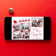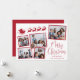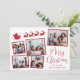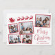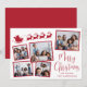 Feierliche Urlaubskarte mit einer 5-Foto-Collage verstreuter Bilder in roten Rahmen, einer roten Silhouette von Rentieren, die den Schlitten des Weihnachtsmannes fliegen, "Frohe Weihnachten" in einem stilvollen roten Drehbuch und Ihrem Namen in schlichter, moderner roter Typografie.