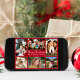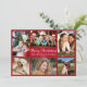 Einfache, moderne Foto Collage rote Urlaubskarte mit "Frohe Weihnachten" in einem eleganten, weißen Drehbuch, 6 Fotos Ihrer Lieblings-Menschen und Momente aus dem letzten Jahr und Ihrem Familiennamen und dem Jahr in der weißen Typografie.