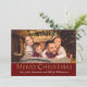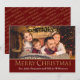 Fügen Sie Ihr Foto und Text zu dieser farbenfrohen Weihnachtskarte mit einem Weihnachtsbanner am unteren Ende, der den Text fröhlich Weihnachten in einem glitzernden Gold zusammen mit Ihren Namen. Dieses Design trägt auf die Rückseite mit einem Muster glitzerndes Gold Frohe Weihnachten über das gleiche Rot. Stilvoll. Einfach.