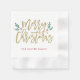 Holiday napkin bietet moderne antike goldene Schrift "Frohe Weihnachten" mit grünem Baumzweig und roten Beerendesign Akzenten. Personalisieren Sie den modernen roten Text mit einem Namen / Familie oder anderen Text.
