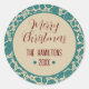 Frohe Weihnachten Aquamarin floral Custom Familien Runder Aufkleber
