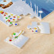 Schöne Schneeflocken mit Weihnachtsbäumen, Häusern, einem Schneemann, einer Kirche und einem Regenbogen mit fallendem Schnee und Schneeflocken. Einzigartiger Weihnachtsmann fliegt am Weihnachtsabend über Vollmond.