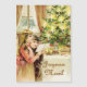 Magnetkarte mit Weihnachtsgrafik aus Ungarn , 1902. Helle Farben und festliche Szene mit zwei kleinen Kindern, die einen Brief lesen, während sie neben der Kerze stehend sind Weihnachtsbaum beleuchtet. Es schneit draußen. Diese Version kommt mit dem französischen Weihnachtswunsch " Joyeux Weihnachten " .