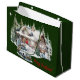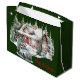 Frohe Weihnachten aus der Cabin Holiday Große Geschenktasche. Von Winter an der Cabin Collection. Loggia mit Reh und Bär mit Blick. Der Stern von Bethlehem strahlt hell. Ein Vintager LKW wird mit Geschenken und Dekorationen für den besonderen Tag beladen. Die Kabine ist für die erwarteten Gäste beleuchtet. Warm und gemütlich. Große Geschenktasche ist ideal für Weihnachtsgeschenke und Nahrungsgeschenke für den Urlaub! "Frohe Weihnachten!"