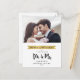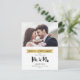 Frohe Weihnachten aus der Zukunft Mr. und Mrs. Foto Postcard ist perfekt, um Urlaub Grüße als frisch verlobtes Paar zu senden. Das Design zeichnet sich durch eine handgezeichnete Typografie im Stile eines Schriftartes aus, mit einem Imitat aus vergoldeten Folienbannern unter den Begriffen "Frohe Weihnachten". Auf der Vorderseite erlaubt das Design auch Platz für ein landschaftliches Foto. Auf der Rückseite der Karte bietet das Design Platz für Grüße. Personalisieren Sie das Design, indem Sie das Foto und den Text des Beispiels ersetzen. Bitte wenden Sie sich an den Designer, wenn Sie Wünsche zur Anpassung des Designs haben.