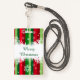 Fröhliche Weihnachtsanschauung mit Schneeflocken-Dekoration auf farbenfrohen gestreiften Hintergrund