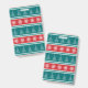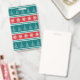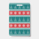 Fröhliche Weihnachtsanschauung mit Weihnachtsbaum und Schneeflocken-Dekoration auf rot, weiß, blau und türkis gestreiftem Hintergrund