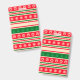 Design mit Weihnachtssymboldekoration auf farbenfroh gestreiftem Hintergrund