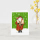 Diese Weihnachtskarte bietet den Weihnachtsmann mit Tüten von Urlaubsgeistern, die bereit sind, im Party zu jubeln.