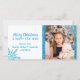 Liebliche und moderne personalisierte Weihnachtsfamilien Fotokarte. Hellblaue, türkisfarbene Schneeflocken mit Glitzer. Frohe Weihnachten und Glück im neuen Jahr (kann auf Happy Holidays oder die Grüße der Saison geschnitten werden). Bearbeiten Sie die Karte, indem Sie Ihre Nachricht und Ihr Foto hinzufügen. Schriftart, Größe und Farbe können geändert werden.