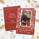 Weiße Beeren, Blätter und Punkte auf einem rustikalen, roten Hintergrund (oder jede Farbe, die zu Ihrem Foto passt) betonen Ihr LieblingsFoto mit Ihrem Familiennamen in schicker Schrift unten. Ihr persönlicher Gruß und Ihre Namen werden auf der Innenseite gedruckt. Mehr Stile in unserer Sammlung.