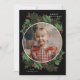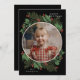 Dieses fröhliche Weihnachtskartendesign besticht durch einen handillustrierten, grünen Kranz mit Blätter, Beeren, Kiefern und Fichten. Ein schwarzer Hintergrund Set die Abbildungen. Dieses Design verfügt auch über ein kreisförmiges Foto. Ein festliches und illustriertes Urlaubsdesign, das Ihr Empfänger in Liebe setzen würde. Sie können die Hintergrundfarbe auf diesem Design anpassen und Sie finden kostenlose Geschenke in meinem Zazzle-Shop.