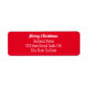 Zwei weiße Sterne begleiten das weiße Drehbuch, das "Frohe Weihnachten" an der Spitze sagt. Drei Zeilen Anzeigetext stehen unter dem Skript. Sie können den Text bearbeiten, um Ihren Namen und Ihre Rücksendeadresse anzuzeigen. Das Etikett ist hell rot. Der gesamte Text ist weiß und kann bearbeitet oder gelöscht werden.