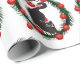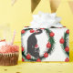 Frohe Weihnachten, Happy New Year benutzerdefinierte Hintergrund Farbe schwarze Katze, Christ, wie Kranz zeichnend.