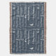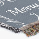 Fröhliche Weihnachtsillustrierung mit Text- und Weihnachtssymbolen auf blauem Hintergrund