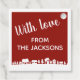 Dieses festliche Weihnachtsgeschenk-Tag zeigt die Silhouette des Schlittens des Weihnachtsmannes mit seinen Rentieren, die über den Häusern auf einem Sternenpfad über einem festlichen roten Hintergrund fliegen. Der Text auf beiden Seiten ist vollständig anpassbar.