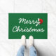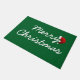 Doormat in Grün und Weiß mit einer Weihnachtsmannmütze für den Urlaub gezeigt. Größere Matte hier gezeigt. Passen Sie diese Matte an oder kaufen Sie, wie es ist.