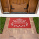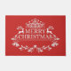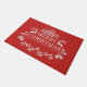 Doormat mit einem roten Hintergrund und einem festlichen frohen Weihnachtsdruck gezeigt. Passen Sie diese Matte an oder kaufen Sie, wie es ist.
