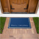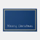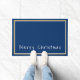 Doormatte mit tiefblauem Hintergrund, weiße und goldfarbene Ränder um die Tür und Phrase von "Frohe Weihnachten" in einem optimistischen Text in weiß am unteren Rand der Tür. Passen Sie dieses Objekt an oder kaufen Sie, wie es ist.