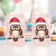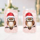 Dieses charmante Design zeigt eine detaillierte Darstellung einer braunen, weißen Eule, die auf einem Ast liegt. Die Eule trägt eine rote Weihnachtsmütze mit weißen Schneeflocken und fügt dem Festgeist hinzu. Seine köstlichen Augen ziehen die Aufmerksamkeit auf sich, während ein kleines rotes Geschenk mit weißem Band subtil am Fuß des Zweiges liegt, was die großzügige Natur der Partysaison nahe legt. Dieses Design erfasst die Hitze und die Weihnachtsfreude durch die Darstellung dieses Wintersymbolvogels im kosmischen und feierlichen Rahmen.