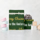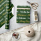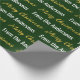 Das Weihnachtsverpackungspapier ist dunkelgrün. Es hat ein Textmuster für eine benutzerdefinierte Nachricht wie Frohe Weihnachten und den Namen des Gebers. Frohe Weihnachten erscheint in einem eleganten Imitat (nicht Folie) Gold-Skript. Der andere Text ist weiß. Der gesamte Text kann bearbeitet werden.