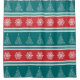 Fröhliche Weihnachtsanschauung mit Weihnachtsbaum und Schneeflocken-Dekoration auf rot, weiß, blau und türkis gestreiftem Hintergrund