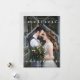Die weiße Weihnachtsfotokarte sagt "Frohe Weihnachten" in eleganter Schrift-Typografie, mit einem persönlichen Foto mit Vollblut auf der Vorderseite und einem neutralen Leinenlook auf der Rückseite.