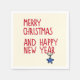 Fröhliche Weihnachten Einfache Moderne Typografie Weihnachtsbuch Party Napkins zeigt den Text "Frohe Weihnachten und Glück Neues Jahr" in modernen roten Schriftzeichen Typografie auf einem cremefarbenen Hintergrund mit einer einfachen Sternendekoration. Ideal für Weihnachtsfeiern und Party. Von Evco Holidays entworfen www.zazzle.com/store/evcoholidays