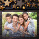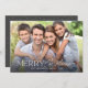 Eine einfache Weihnachtskarte mit einem minimalen Design und einem horizontalen Foto, das die Vorderseite der Flachkarte füllt. Das Design wird mit dem angesagten, handgeschriebenen Stil-Skript "Frohe Weihnachten" auf dem Foto betont.