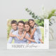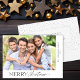 Eine einfache Weihnachtskarte mit einem minimalen Design und einem horizontalen Foto, das die Vorderseite der Flachkarte füllt. Das Design wird mit dem angesagten, handgeschriebenen Stil-Skript "Frohe Weihnachten" auf dem Foto betont. Auf der Rückseite finden Sie einen eigenen Text, um Ihre persönliche Nachricht zu verfassen.