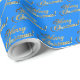 Frohe Weihnachten Elegant Cerulean Blue Gold Scrip Geschenkpapier