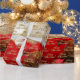 Fröhliche Weihnachten Elegante Imitate Goldene Schrift Goldenes Textmuster auf Poinsettia Hintergrund Jahreszeit Glossy oder Matte Gift Wrapping Paper