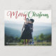 Frohe Weihnachten Elegant Red Green Script Foto Postkarte