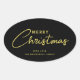 Frohe Weihnachten Elegante Schwarz-Gold-Script Ovaler Aufkleber