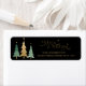 Frohe Weihnachten Elegante Minimalistische Wasserfarben Pinienbäume, schwarzer Hintergrund, grüne Wasserfarben mit goldenen Sternen