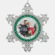 Frohe Weihnachten Elegantes Foto Grün & Weiß Schneeflocken Zinn-Ornament