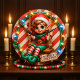 Diese festliche Uhr besticht durch eine fröhliche Elfe mit rosigen Wangen und spitzen Ohren, die ein rot-weiß gestreiftes Outfit und eine Weihnachtsmannmütze trägt. Der Elf sitzt auf einem Holzschwung, der vor einem rot-weißen, mit Zuckerrohr gestreiften Hintergrund aufgehängt ist. Die Szene ist mit Weihnachtsbeleuchtung, heilig, und einem kleinen Schild, dass "MERRY CHRISTMAS". Die Uhrenhand ist schwarz, und die Zahlen sind in einem festlichen Schriftart stilisiert, alle gerahmt in einem runden Rahmen.
