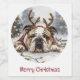 Frohe Weihnachten English Bulldog Reindeer Weinetikett