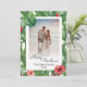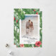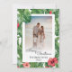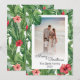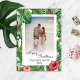 Frohe Weihnachts Familie Foto Grußkarte. Diese Karte ist personalisierbar mit Ihrem Foto und Namen, die Sie an Ihre Familie, Freunde und Kollegen senden können. Verziert mit einem tropischen Muster von lebhaften grünen Bananen-Blätter, Monstera-Blätter, mit roten Ingwer-Blume, Blume aus rotem Hibiskus und rosa Hibiskus-Blume.