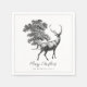 Buckhirsche im Wald, klassische Vintage Schwarz-Weiß-Illustration mit bearbeitbaren Namen und Datum, perfekt für Weihnachten oder andere Anlässe.