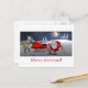 Perfekte Karte für späte Weihnachtsgrüße oder Geschenke. Ein Cartoon Santa und Rudolph fixieren ihren gebrochenen Schlitten.